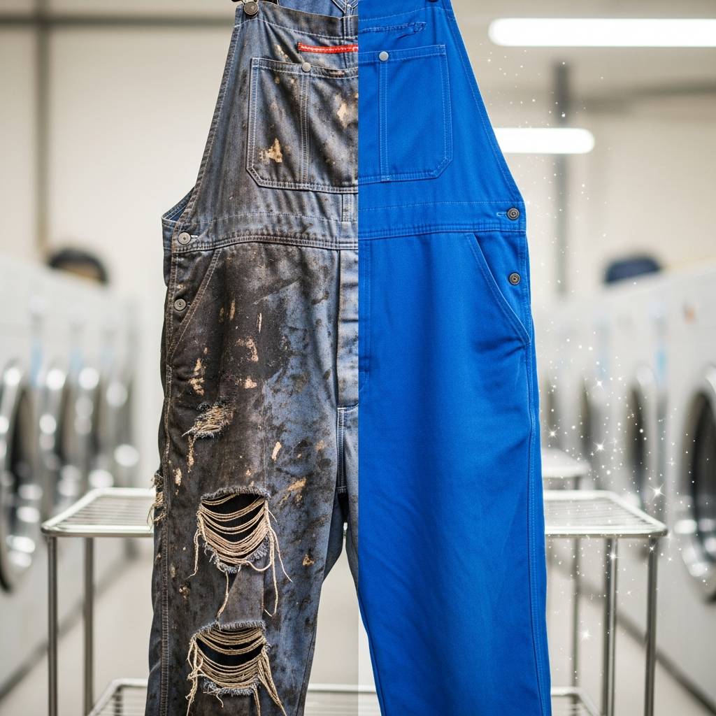 家庭用の洗濯機や市販の洗剤ではどうしても落ちない、作業服に染み込んだ機械油やグリスなどの頑固な黒ずみ。これを落とそうとしてブラシで強く擦ったり、強力すぎる漂白剤に長時間つけ置きしたりすると、汚れが落ちる前に生地が傷んでしまい、作業服の寿命を縮める原因となります。クリーニングのプロフェッショナルは、この「強力な洗浄」と「繊維の保護」という一見矛盾する課題を、科学的なアプローチと専用の設備で解決しています。